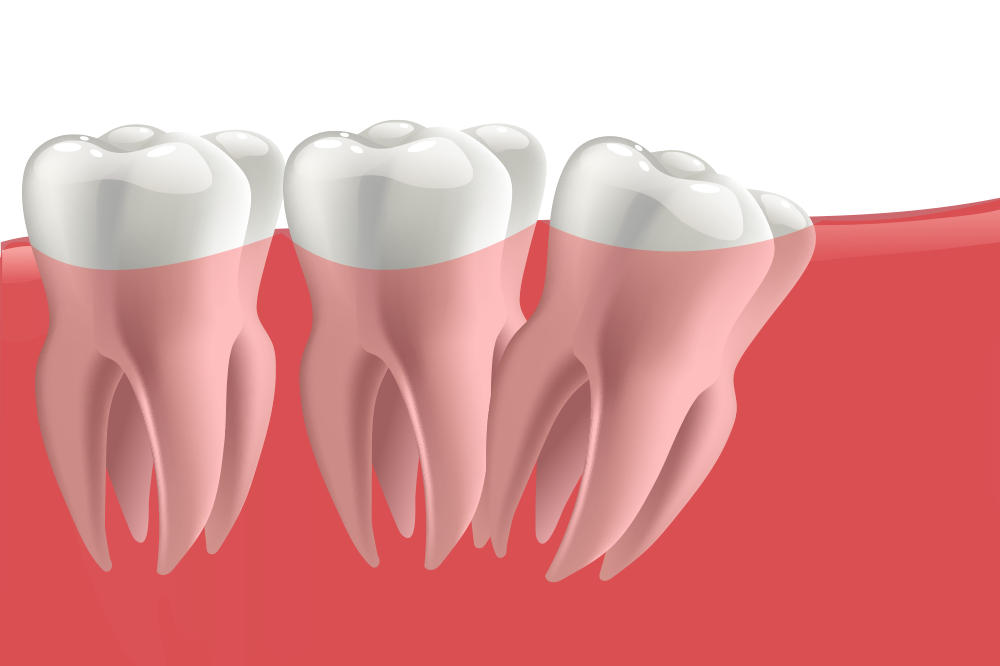 抜いていく方向と逆方向に向いて生えているため、難易度の高い抜歯になるケースもあります。