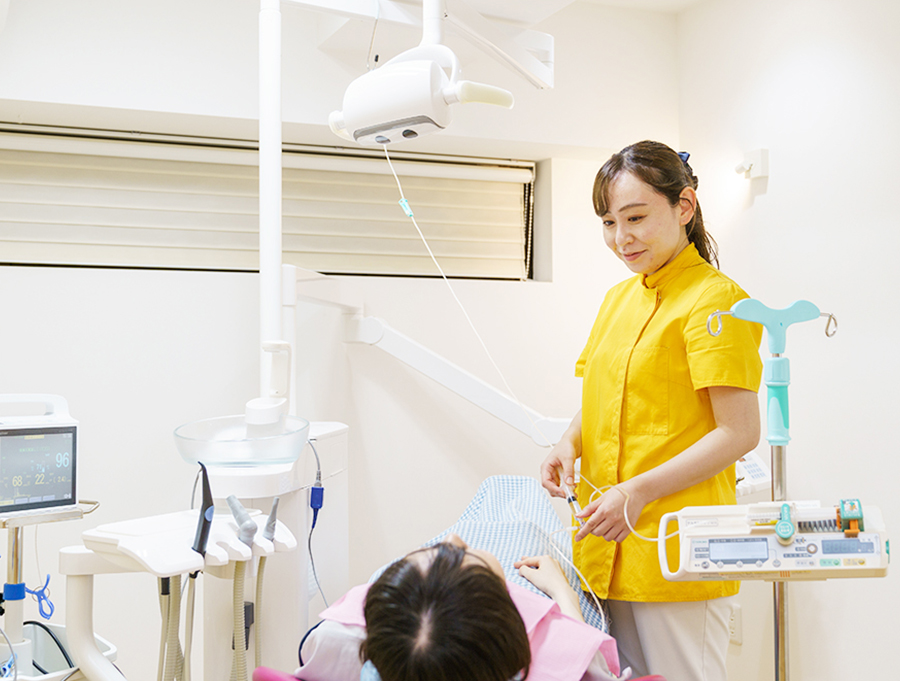 静脈内鎮静法は点滴麻酔で、眠った状態で治療を快適で安全に受けることが出来る画期的な麻酔方法です。